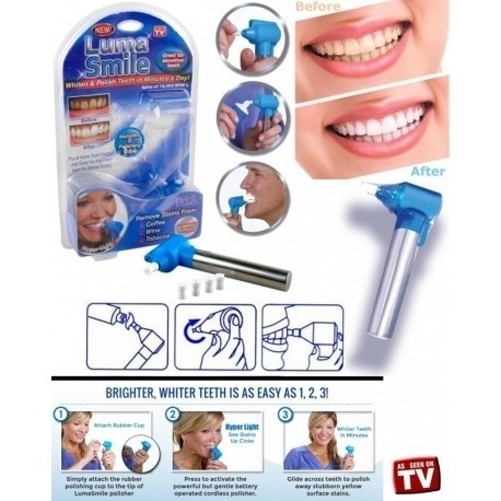Va prezentam dispozitivul pentru albire a dintilorsi anume Luma Smile.Solutia ideala de a obtine niste dinti albi si sanatosi. Acest aparat pentru albire a dintilor Luma Smile, ofera posibilitatea unui tratament profesional, chiar in confortul casei dumneavoastra, astfel econimisind atat timp cat si bani. Luma Smile utilizeaza ultima tehnologie de albire a dintilor utilizata si de catre stomatologi, cu ajutorul dispozitivului de polisat. Utilizand acest dispozitiv Luma Smile doar cateva minute pe zi, in prima saptamana se vor observa rezultate excelente.