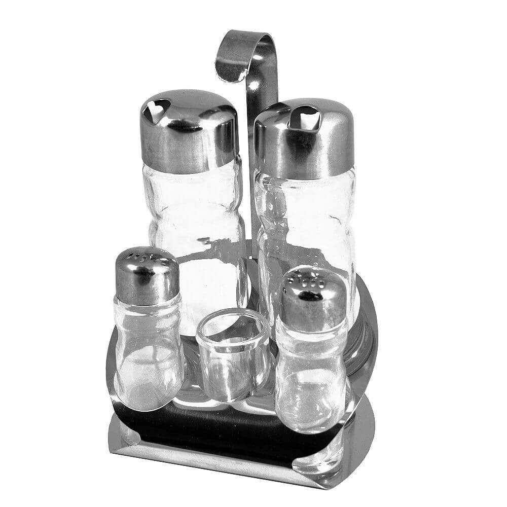 Setul oliviera cu suport sare, ulei, piper, otet va ajuta sa aveti la indemana si sa folositi cu usurinta condimentele necesare, dar veti accesoriza si optimiza spatiul din bucataria duneavoastra.Oliviera este usor de curatat manual; nu se poate curata in masina de spalat vase.