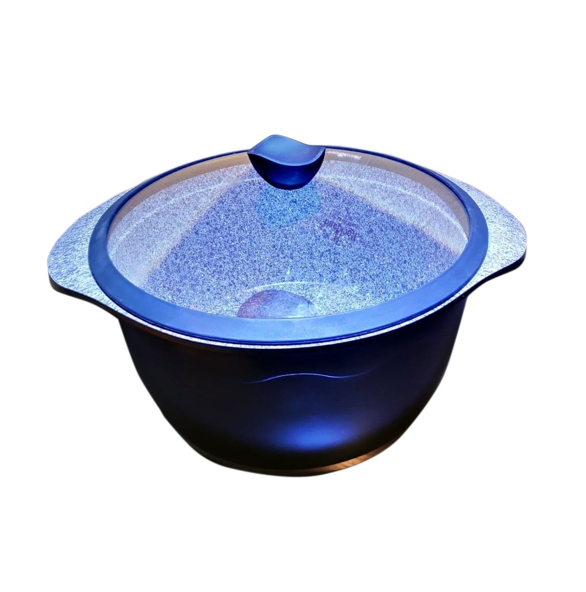 Oala marmura 24 cm este insotita de un capac de sticla termorezistenta. Potrivita pentru toate surse de gatit, inclusiv cele pe inductie. Usor de curatat, se poate curata in masina de spalat vase. Compatibila cu orice tip de cuptor.