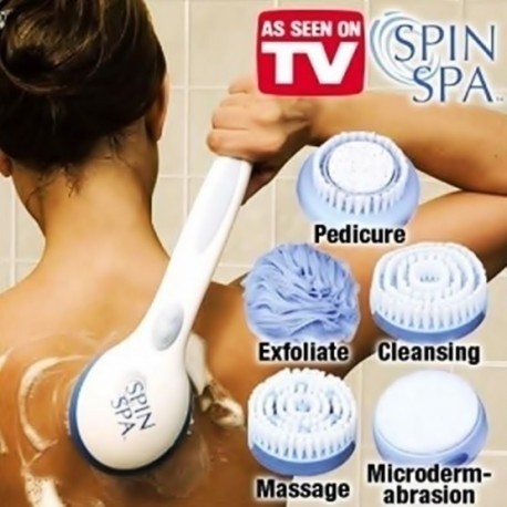 Cu ajutorul formei speciale a perieiSpin Spa, va vetiputea spala in locurile greu accesibile fara efort. Cu peria de dusSpin Spava bucurati de o piele care straluceste de sanatate si frumusete fara a mai fi nevoie sa mergeti la saloanele de infrumusetare. Adaugati pe corp gelul de dus favorit, iar de restul se ocupa periaSpin Spa. Peria Spin Spa este un aparat profesional rezistent la apa cu perii si capete rotative detasabie. Pe langa faptul ca va ajuta sa va spalati in zonele greu accesibile, va ofera in acela timp un masaj relaxant.