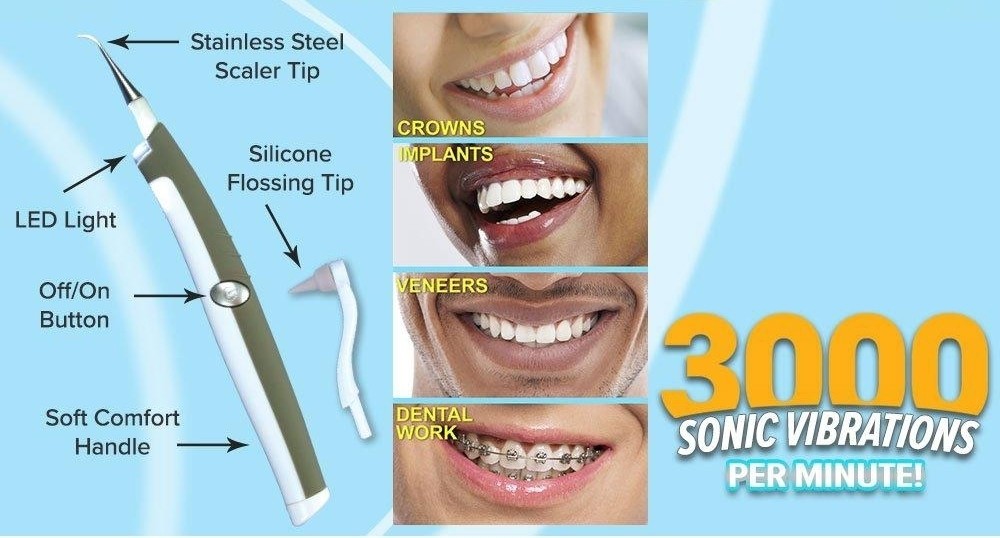 Dispozitivul pentru curatarea interdentara cu Led si ultrasuneteeste ideal pentru curatarea zonelor greu accesibile acoperite de tartru sau reziduri alimentare din zona distala si adiacenta a dintilor.