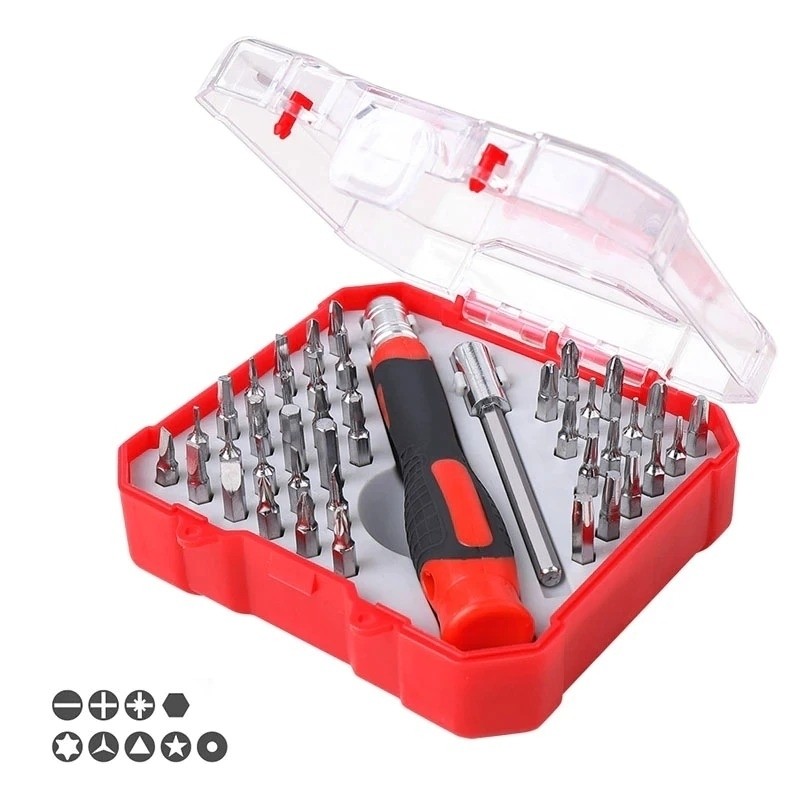 Setul capete surubelnita si tubulare este format din 41 de elemente, dispuse intr-o cutie din plastic confortabila. Bitii sunt realizati din otel S2 de inalta rezistenta, iar restul de componente sunt fabricate din otel crom vanadiu de inalta calitate, care asigura o rezistenta de durata instrumentului. Setul include, printre altele, o gama larga de tubulare hexagonale, capete de surubelnita, adaptor pentru biti si adaptor drept tubulare. Trusa este utilizata in munca de asamblari minutioase, reparatii de autovehicule si alte lucrari in casa si garajul fiecarui mester.