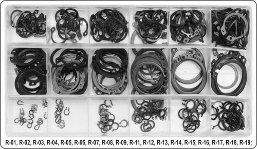Setul de sigurante tip inel alezaj Seeger contine 300 de bucati din cele mai uzuale dimensiuni organizate in cutie speciala cu capac.