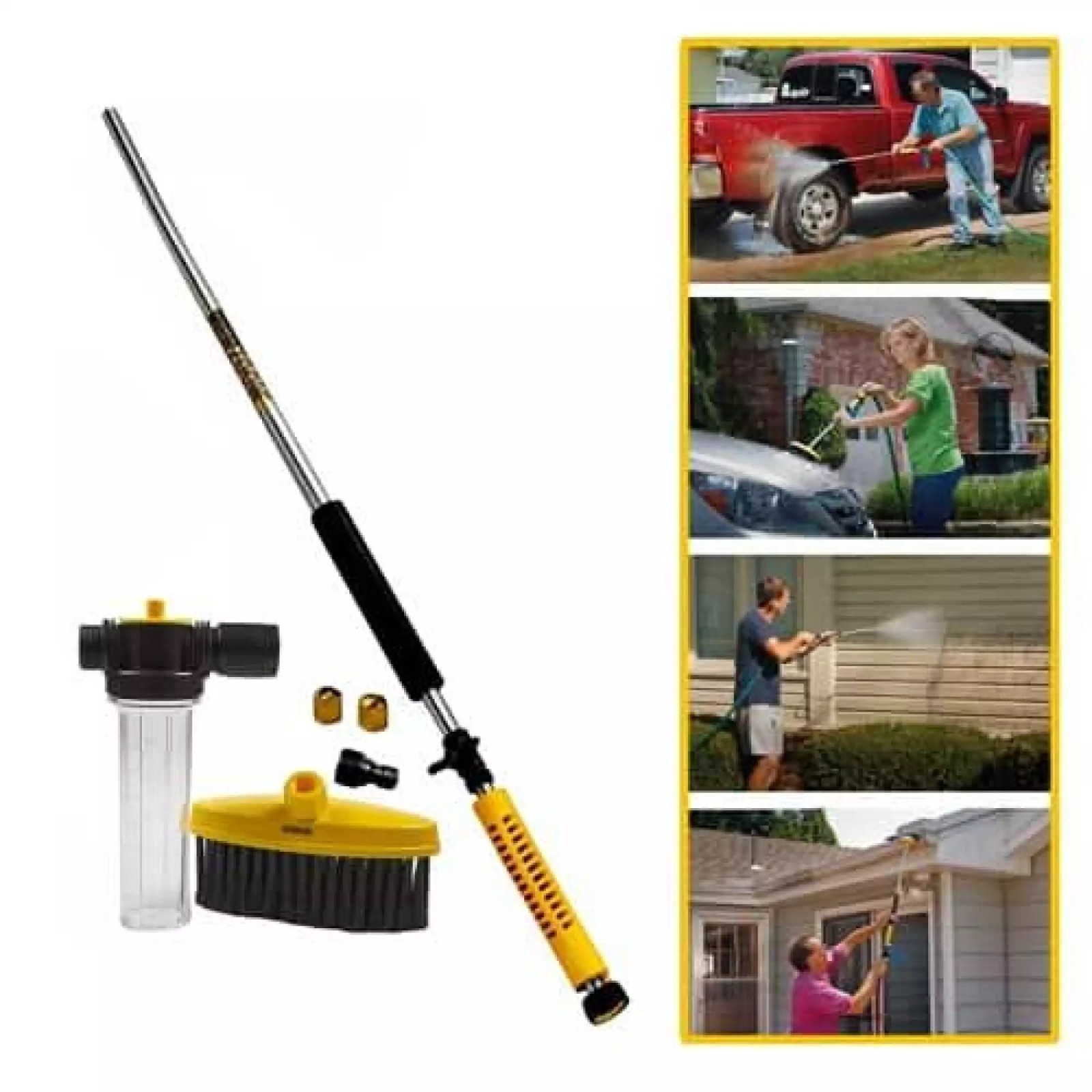 Cu Water Zoom puteti curata umbrelele si mobilierul de gradina, instrumentele si utilajele de gradina si chiar si gardurile, zidurile si peluza, geamurile si masina.Setul contine: