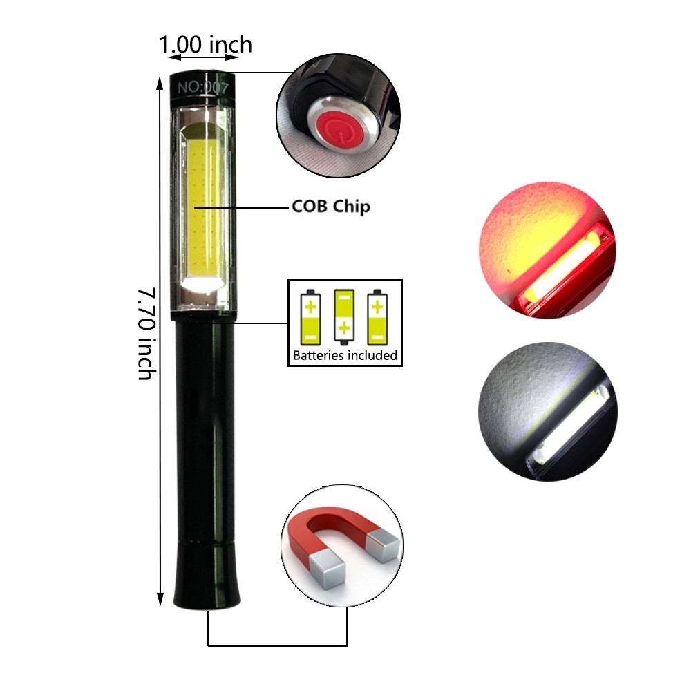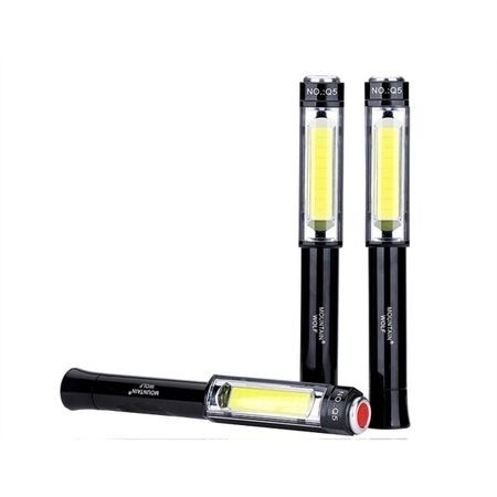 Este o lanterna foarte rezistenta cu 1 led cob puternic de 5 watt pe trei faze foarte usoara si stabila cu fixare pe magnet cat si cu clema speciala pentru fixare.Lanterna este alimentata cu trei baterii de 1,5 v AA cu o autonimie de aproximativ 10 ore (neincluse in pachet).