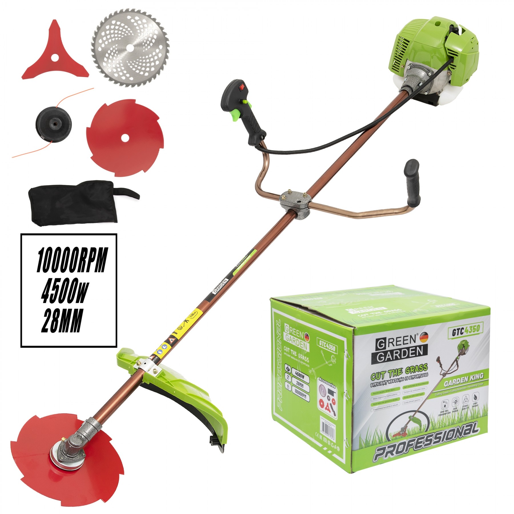 MOTOCOSITOARE PROFESIONALA GREEN GARDEN PE BENZINA + 7 ACCESORII 4500W